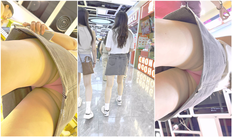 【KFC】短裙少妇相机放在腿中间CD❤️弯腰露出粉色无痕骚内